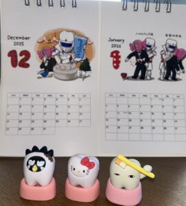そして、デンタルショーに行った際に頂いた、デンタマンのカレンダーは、歯科にちなんだイラストがあり毎月の楽しみだったのですが、
